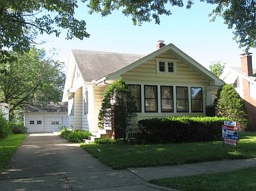 Solidly built bungalow with 3-car detached garage on level lot. Custom built oak cabinets including built-in china cabinet in the cozy kitchen. Large den could be 4th bedroom although doorway to living room is an archway. Although the house is a 1.5 story and the bedrooms on the second are dormers, the height of the ceiling is standard. There could be oak hardwood flooring under the carpet on the main level because that is what shows in the closets. Laundry chute.