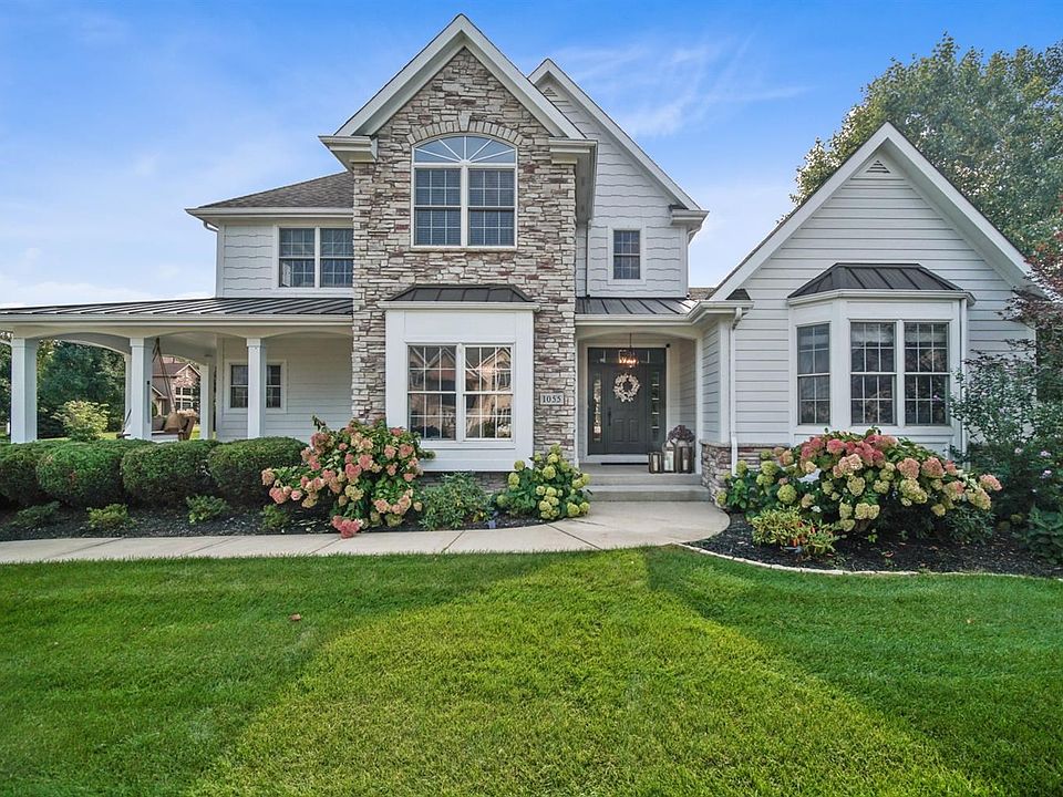 Beautiful Sand Creek home behind the gates! Newly updated 4 bed/4.5 bath home with home gym, wrapping front porch with swing, wine closet, basement bar, main floor master and more! The kitchen opens into the living room and also offers a formal dinner. Main floor master and large master bath/walk-in closet! Home office/den on the main floor could also be used as fifth bedroom! Three large sized bedrooms and two bath upstairs with another cozy living space - perfect for study space! The open basement features a beautiful home gym, built ins, fire place, bar, full bath, pantry storage, and a wine closet!