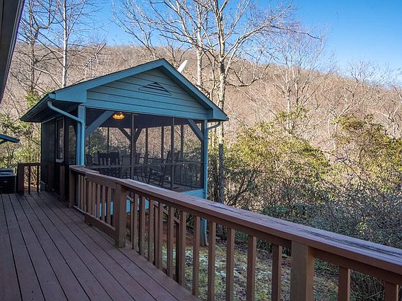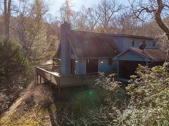 Beautiful mountain home 4.74 ACRES WITH A SMALL CREEK AND LONG RANGE VIEW. Wood burning rock fireplace, hardwood floors. Master on the main level, another bedroom and bathroom upstairs with a loft/bonus room. Wrap around deck and a free standing screened in porch. Stairs leading down to the creek. This would make a great year round or vacation home. Road is well maintained. Year round view that could be even better with some trees taken down. Convenient to Dillard and Clayton, GA as well as Franklin, NC