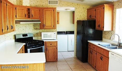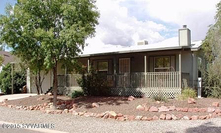 Located in Oak Creek Valley, nestled between Sedona and Cottonwood. Open and bright 2 bedroom/2 bath with vaulted ceilings, ceiling fans, wood stove, dining and laundry rooms. Master bath has two sinks and the bedroom features a walk-in closet. Fully fenced private backyard has an oversized maintenance-free trex deck, raised planter, drip irrigation and mature trees. Relax and enjoy community pool, jacuzzi, sauna, clubhouse and park. Just minutes to hiking trails along Oak Creek. Includes bamboo window shades, central air, evaporative cooler, refrigerator, propane stove/oven, washer, dryer and dishwasher as well as storage shed and attached one-car garage.