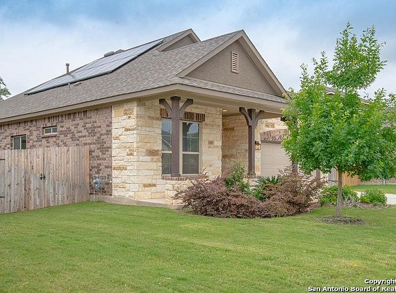 YOU NEED TO SEE THIS Beautiful home in the highly sought after Trails At Helotes. This home boasts an amazing open floor plan full of natural light with a huge game room with it's own bath. It is filled with 8 foot doors, 5 inch baseboards, and granite counter tops throughout the home. Imagine making your favorite meal on the gas cook top in this wonderful kitchen surrounded by 42" cabinets and beach wood ceramic plank flooring. Relax and admire the deer grazing in the greenbelt out back, from your own master retreat. This energy efficient home now has solar as well. Too many upgrades to note. Schedule your showing today and welcome home!