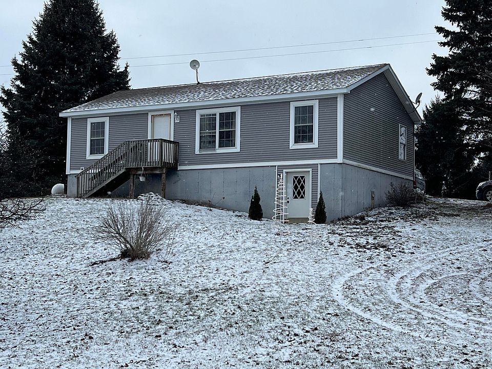 Built in 2006, this 3 bedroom, 2 bath ranch-style home sits high on a hill, set back from the road for excellent privacy. The home features a bright, functional layout with a comfortable living area and main floor bedrooms and laundry, including a primary suite with a private bath. A full walk-out basement offers endless potential—whether for extra storage, a home gym, or additional living space. Enjoy peaceful surroundings and scenic views in this private, inviting setting.