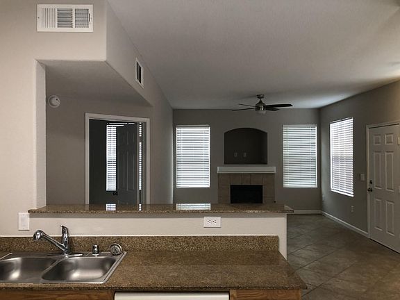 FANTASIC 3 bedroom single story, lower unit condo in Lone Mountain area in the sought after gated Chateau Versailles community. This home features great kitchen with pantry, microwave, plenty of cabinet and counter space and separate dining area tht overlooks fantastic open living room with fireplace. This home also features 2 tone paint, new carpet in 2 primary bedrooms and tile in 3rd bedroom and throughout the rest of the home. All bedrooms feature walk in closets, Main primary features tub and separate walk in shower, 2nd primary features walk in shower which is also main bathroom with separate doors. This unit has a separate work/office area, separate laundry room with washer/dryer, attached tandem garage which allows for plenty of storage and vehicle or 2 vehicles. Great patio area and community features, pool, spa, exercise room and clubhouse. Small pet upon approval with additional fee, no smoking of any kind in property.
