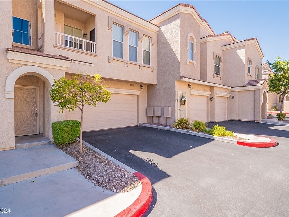 This gorgeous two bedroom, two bathroom home in the sought after gated community of Chateau Versailles is complete with new flooring, freshly painted walls, stainless steel appliances, gas range, granite countertops, a spacious living area and a oversized two car garage. The primary bedroom showcases a double vanity and huge walk-in shower. Enjoy all the amenities the community offers, including a crystal blue pool and spa, fitness center, outdoor BBQ area and more! Minutes from mulitple parks, shopping, restaurants, entertaiment and Lone Mountain, this property has it all!
