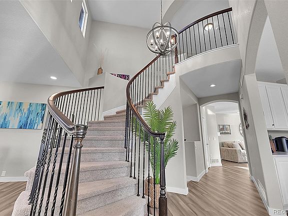 Discover this stunning 5-bedroom, 4-bathroom home located in the desirable Hearth community of Highlands Ranch! This gorgeous two-story residence boasts a beautifully landscaped lawn and a private patio, perfect for enjoying the Colorado sunshine. Step inside to an inviting foyer that leads into a spacious living room and a cozy family room with a fireplace, ideal for relaxing. The bright and airy eat-in kitchen features a large peninsula and comes fully equipped with all appliances. Upstairs, a striking spiral staircase leads to the bedrooms, including a luxurious master suite with a private 5-piece bath. With a fully finished basement, there’s plenty of room for entertainment or additional living space. The basement includes a show-stopping wine cellar and bar area, a stunning spa-like bathroom, additional bedroom and tons of storage. Residents enjoy access to top-tier amenities through the Highlands Ranch Community Association, including parks, trails, and recreational facilities. This home is perfectly situated with easy access to C470, I-25, and minutes for DTC and the Park Meadows area for all your shopping and dining needs. This is the perfect home in the perfect location for your next move!
