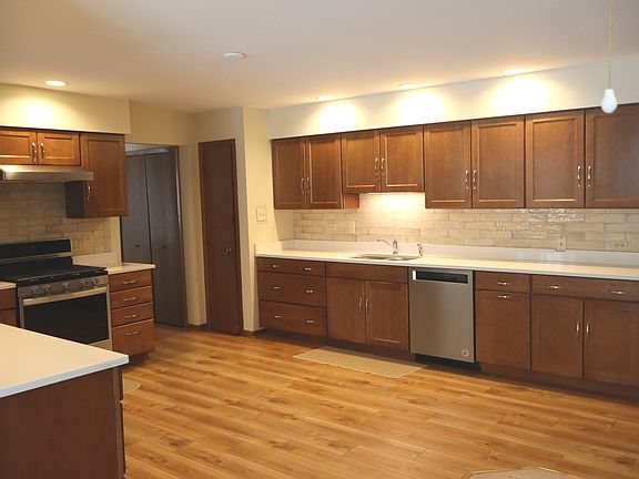 Large family roomUpdated custom cabinetsDry bar for partiesBeautiful remodeled kitchenUpgraded wood laminate floors