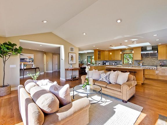 This beautiful property has been extensively updated throughout with modern finishes and an open floor plan centering around a great room which flows to a rear yard entertaining area. Perched within the Los Altos Hills Foothills, this home is filled with light from its abundant windows. While located only a few short minutes from downtown Los Altos, highway 280 access, the Rancho Shopping Center, a trailhead leading into the Ranch San Antonio Preserve and the Los Altos Golf & Country Club, this home is private, peaceful and is nestled into a grotto of mature oak trees. The spectacular city light views may be enjoyed from much of the home, including the great room with its fully retractable glass patio doors, which flow into a rear patio and yard entertaining area. The large upstairs bedroom (only 1 BD upstairs) has fantastic city light views, an En-ensuite bath, walk in closet & its own washing machine and dryer. This upstairs room may be very functional for a wide range of uses.