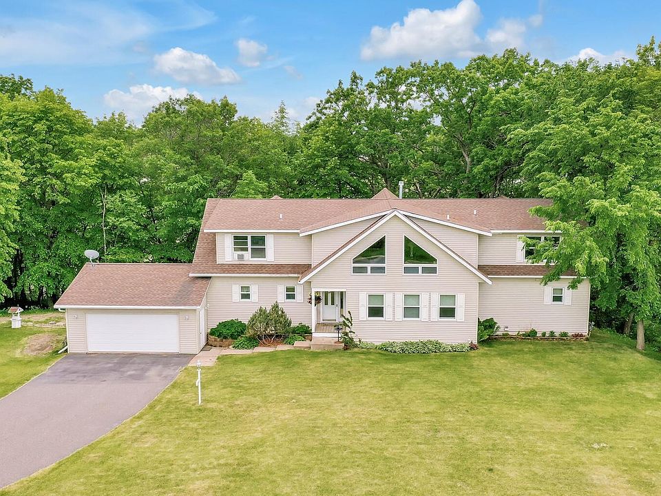 This home checks all the boxes! Welcome to 10551 N. Martha Lake Drive in scenic Chisago City! Surrounded by lakes! Close to parks-golf-winery-brewery-restaurants & still only 40 mins to the Twin Cities! Stunning features with plenty of room to spread out & enjoy the natural setting. Spacious entryway into the LR with opulent 2-story vaulted wood ceilings, soaring windows, gas FP, wet bar area. Large kitchen & dining room with wood floors. Soaring vaults & patio door to the large deck. MF has 2nd bedroom with French doors (being used as an office) but could be a bedroom if needed. MF owner's ensuite is spacious with private bath with whirlpool tub and a separate shower. Closet is humongous with built-in shelving & lots of space for hanging clothes. Up the open staircase to 3 more BRs, 2 Full BA & an awesome loft area!! LL finished with an add'l laundry area-sunroom-flex space & under garage with in-floor heat for a great workshop/man cave. Seller providing 1 year Home Warranty with sale