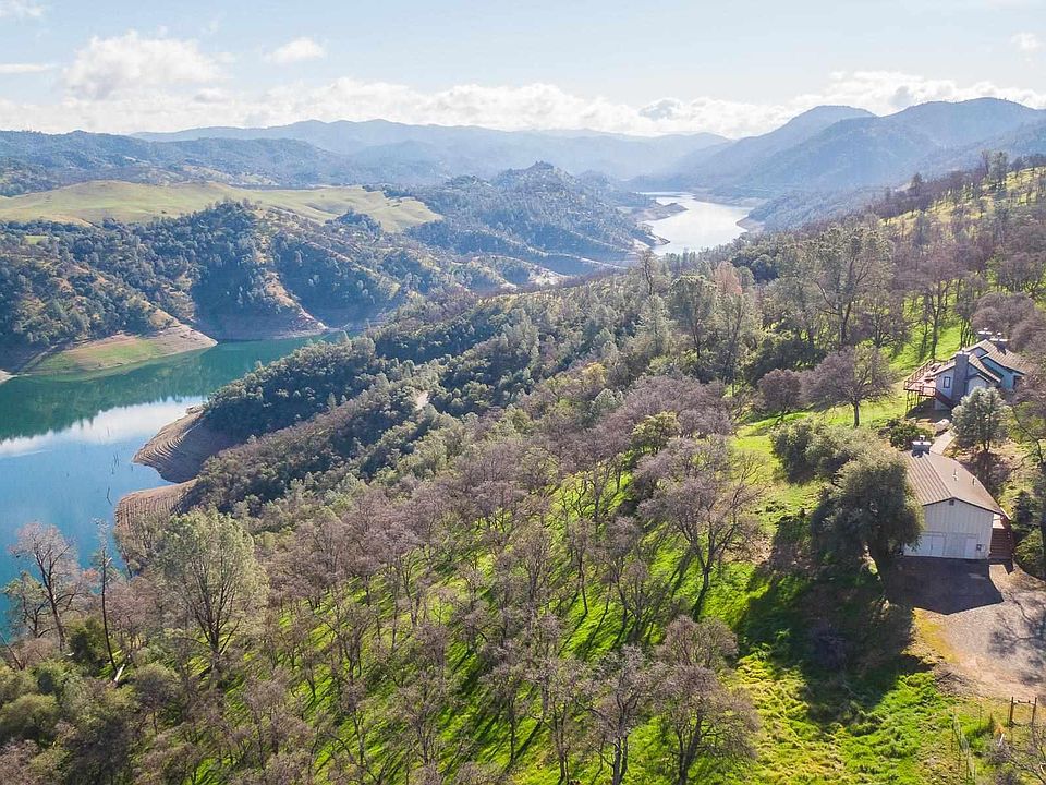 This is it! 2 homes on almost 50 acres. These houses are a wonderful vacation spot to entertain or rent out one and live in the other! The primary house is a 2 Bed/2 Bath with a dual master set-up as each bathroom is ensuite. The wall of windows and skylights give you unfettered views of the lake and surrounding hills. There is a fireplace in each bedroom as well as the living room to warm up the cool winter nights. The 2nd home is a 3 Bed/1Bath that boasts an open great room with large built-in table and hardwood floors. There is a garage for storage underneath and laundry as well. The deck off the great room has epic views of the surrounding area. In addition to all this, there is a water tank that gravity feeds to the house from the well and there are multiple other sites to build an outdoor patio, a sauna complex, or even construct a dream shop. Come see this property today!