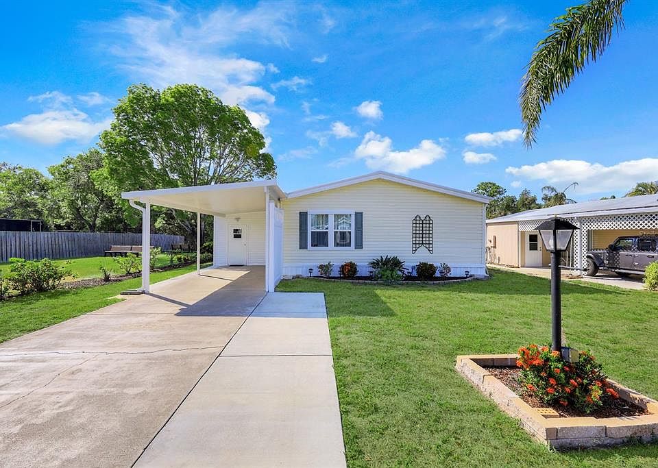 SPECIAL FINANCING AVAILABLE. Welcome to Bonita St. James Village, a 55+ community located in a premium location. This lakefront home is a beautifully remodeled 2-bedroom, 2-bath home, designed with meticulous attention to detail. As you step inside, you'll be greeted by the inviting atmosphere created by the new vinyl plank flooring that flows throughout the home. Natural light fills the living space with the new windows, creating a bright & cheerful ambiance. The remodeled kitchen is a true highlight, featuring top-of-the-line LG stainless steel appliances, sleek countertops, & ample storage space. Lots of features including new ceilings, skylights and plumbing. One of the most impressive features of this home is the breathtaking lakefront view it offers. Imagine waking up each morning to the tranquil sights of the lake, accompanied by a symphony of wildlife. The outside sitting area is an ideal spot for relaxation, where you can sit & soak in the beauty of nature right at your doorstep. The home includes a large workshop equipped with a portable air-conditioner. Living in this community you can enjoy the Clubhouse to the swimming pool, bocce ball & shuffleboard courts.