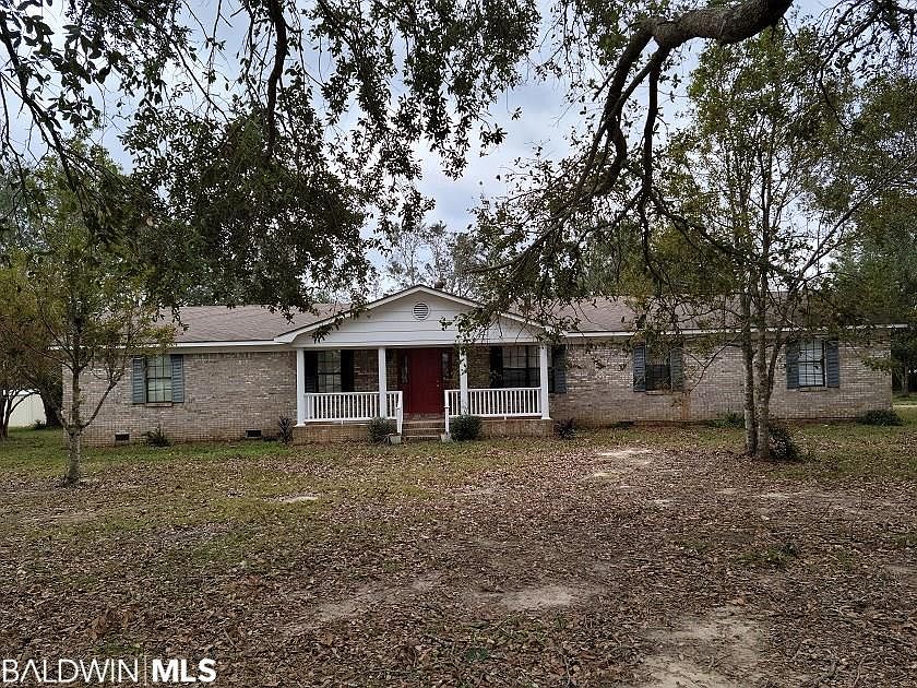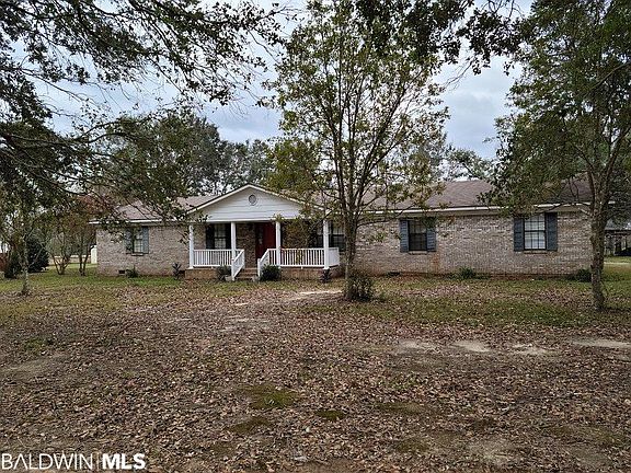 4 bedroom 3 bath home in Fairhope on 3.4 acres. 2 master bedrooms on opposite ends of the house. No carpet. Electric fireplace; formal dining room; formal living room; great room; sun room; Large porch area; shed in the back; handicap accessible.