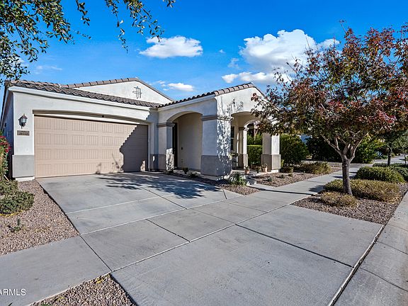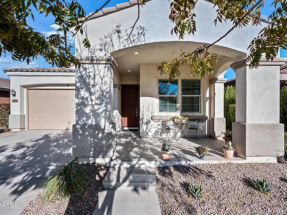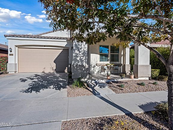Welcome to this Gorgeous 1935 Sqft 3 Bedroom+Bonus Room, 2.5 Bath Gem in Eastmark!! Step inside and you will be greeted with neutral 12x24 tile flooring throughout the home, 10 foot ceilings and 8 foot doors. The half bath and bonus room are situated to the right, perfect for an office, playroom or game room. The stunning kitchen and great room present an oversized kitchen island with breakfast bar, granite countertops, tasteful pendant lighting, recessed lighting, 42'' white cabinets with black pulls, corner cabinet with glass insert, stainless steel appliances, built in oven and microwave, 5 burner electric cooktop, pantry and dining off of the kitchen. The Great room boasts a 3 panel glass slider door to the backyard creating an abundance of natural light and a modern 52'' black ceiling fan. The owner's suite features an oversized super shower and separate soaking garden tub with pot shelving, double sink vanity, large walk-in closet and a separate water closet. The backyard presents a covered patio with ceiling fan, a paver patio extension perfect for extra entertaining space, synthetic grass with a paver border and mature bushes. This beauty sits on an amazing North South interior lot adjacent to only single story homes and close to multiple parks!
