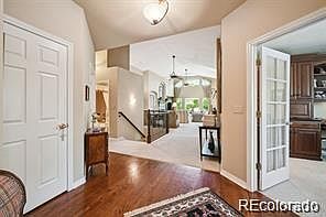 Welcome to this private lovely 3 bed/ 3bath/study semi-custom maintenance patio home with one of the BEST lots in Legacy Ridge West- quiet and secluded! Move in ready semi-custom open floor plan, sprawling corner ranch home in impeccable & meticulously maintained and noticed the moment you enter. The great room is light and bright with 17' ceilings & oversized windows and backs to a private, secluded common area green space surrounded by mature trees and landscaping. The owner’s suite backs to the open space and is privately located away from the secondary bedrooms. Owner's suite has a luxury walk in custom closet with a built in safe, 5-piece bath with a custom glass shower enclosure, decorative tile, a soaking tub, and heated tile floors. There are two additional bedrooms on the main floor one with private ensuite and the other near the other full bathroom. Open kitchen is open and overlooks the great-room and open space and offers granite countertops, decorative tile/backsplash, and Kitchen Aid appliances. Also located on main floor is the formal dining room, study with custom built in cabinets, desk and shelving, the laundry room has a utility sink, cabinets extra countertop space, washer & dryer. Professionally finished garden level basement is also light and bright with a large open space concept perfect for entertaining and offers a built cabinets, wet bar, beverage refrigerator, entertainment center, fireplace, and crafts/storage/exercise, or workshop area. Special noted features:smoke/pet free, wood floors, luxury carpet, coffered ceilings, plantation shutters and blinds, custom built entertainment centers and fireplace mantel, Epoxy flooring, extra cabinets & shelving for storage space, covered and extended flagstone patio & best of All “a quiet and private back yard”. The property is centrally located to open space, walking/biking trails, tennis courts, shopping, dining, major highways, & near Legacy Ridge Golf Course