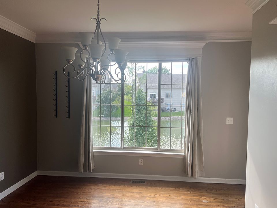 Granite counter topsView of the lakeStainless steel appliancesHardwood floors