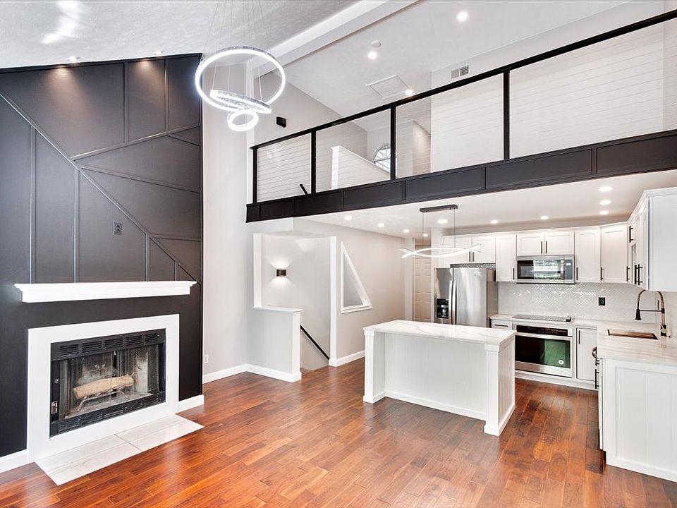 Contemporary finishes throughoutOpen concept layoutFinished basementPeaceful scenic viewStylish fireplace