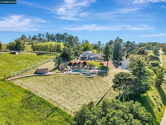 A Slice of Heaven with Unforgettable Views Welcome to your dream ranchette — a stunning 5-acre estate perched above the shimmering Los Vaqueros Reservoir and surrounded by open, rolling hills. Enjoy resort-style living with a saltwater pool and spa, where you can sip a glass of wine at sunset, dine alfresco under the stars, and soak in the beauty and privacy all around you. Equestrian lovers will appreciate the 4-stall barn, fenced pastures, and thoughtfully designed spaces for horse and rider alike. Car enthusiasts will be wowed by the brand-new 30' x 60' steel car barn — ideal for showcasing a collection, tackling hands-on projects, or creating the ultimate workshop. A charming 2-bedroom barndominium ADU offers rustic-luxe finishes, a full kitchen, and inviting living spaces — perfect for guests, extended family, or potential rental income. Move-in ready and meticulously maintained, this exceptional property offers peaceful country living just 15 minutes from the 580 freeway. Properties like this are rare and highly coveted — come experience the lifestyle you’ve been dreaming of.