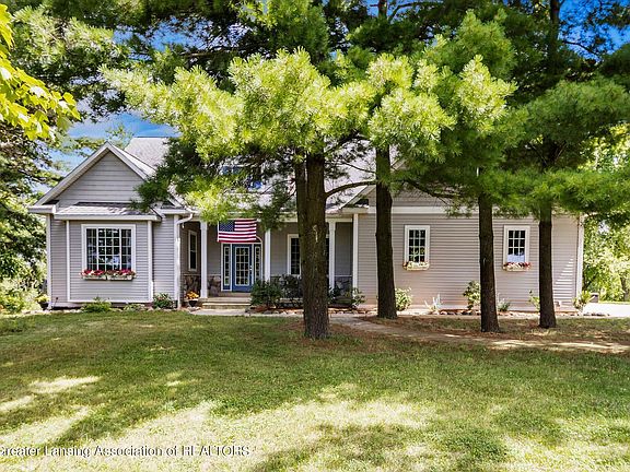 Wow! Welcome to 10555 S Wright Road! This property is an absolute stunner and is a custom-built, one-owner home, complete with the highest standards of quality, efficiency, and elegance. Your very own private piece of heaven! Featuring 7 bedrooms, 3.5 bathrooms, over 5,000 finished living space, and sitting on 20 acres. Located in the country setting of Wacousta and in the Grand Ledge School District. As you enter through the front door you are greeted with a gorgeous foyer with ceramic tile flooring that leads you to the open concept first floor. The living room features gorgeous wood trim, gleaming hardwood floors, a river rock fireplace, and cathedral ceilings. The kitchen and dining room were recently remodeled in 2020, with new stainless-steel appliances, granite countertops, marble backsplash, large pantry, kitchen island with barstool seating and a glass sliding door that opens to the back porch. The remainder of this floor includes the primary suite with a walk-in closet space and updated Tuscany bathroom, an office space, a half bathroom, another bedroom, and the large mud room with first floor laundry. Off the mud room is the two-car attached garage that is heated and has hot and cold water spigot. The second level has loft space, two large bedrooms, a full bathroom and a bonus room above the garage. The expansive walk-out, lower level has two additional bedrooms, a full bathroom, a rec space with a wet bar and gas fireplace, and plenty of storage space. Not a single efficiency detail was missed! Starting with the foam block construction foundation, radiant in-floor heating, wired for exterior generator, 300 foot well with sediment and carbon system and so much more. Outside is your 4-season fun place to live! The backyard backdrop has all the privacy you need to enjoy the summer days in the heated saltwater pool, with ambient lighting. The 20 acres also features 3 barns, a guest house with over 1,200 living space, three large barns and plenty of space to play! In short, this property is a dream come true! Call today to schedule your private showing.