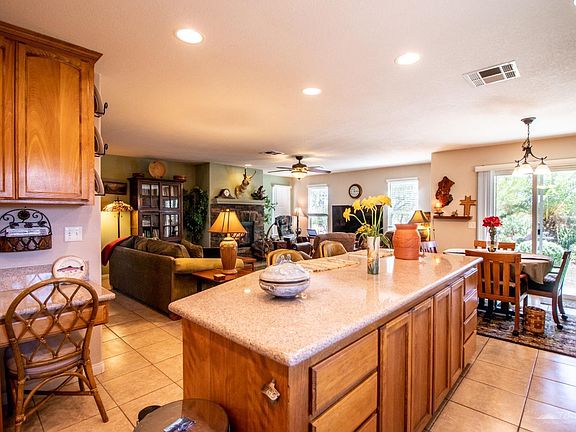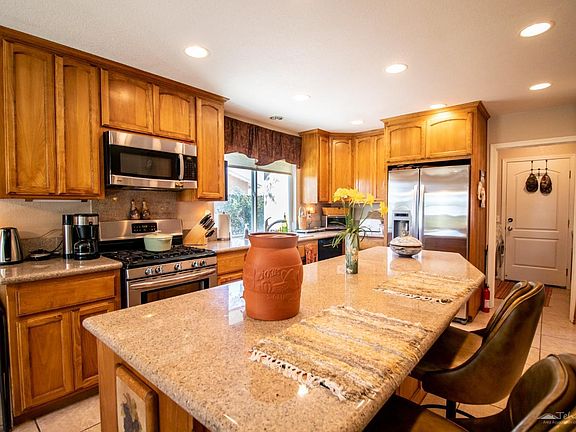 An Oasis in California City and a short drive to Edwards Air Force Base! This custom built home is being offered mostly furnished, including some antiques and the water wise landscaping is already in place. All you have to do is move in! The 3 bedroom, 2 full bath property starts off with an extra long concrete driveway, giving you plenty of room for parking and even room for an RV. The oversized garage has plenty of room for shelving and storage, as well as 2 vehicles. The front courtyard has a waterfall fountain(automatically filled by the Rain Bird timer in garage). Also all of the container plants are automatically watered,as is the back fountain. The beautiful river rock dry stream meanders through the front yard naturally culminating at the large address rock. Your own micro climate of trees & plants, allow you to watch the hummingbirds, quail and many other song birds. Enjoy the mountain views of beautiful sunsets from the front porch, office and guest bedroom. The leaded glass front door opens up to the foyer that has a trayed ceiling and lighted niche. The large family room includes a beautiful stone fireplace and opens up to the well lit kitchen and formal dining room. The archways and bullnose corners give the home the custom feel and the Low E windows protect you from the hot and cold weather. The home design is efficient and was well thought out by the builder. The kitchen includes newer stainless steel appliances, granite counter tops, pantry and a large island, perfect for prepping food or entertaining. The large master bedroom has plenty of room for a king bed, as well as your dressers and night stands. In the master bathroom you will find a soaker tub, large shower, walk in closet and a tall vanity with dual sinks. The other 2 bedrooms are ample size and offer great views of the front yard landscaping. The backyard landscaping is just as beautiful as the frontyard, with plenty of shade trees and a covered patio. The 40 year dimensional shingle roof and stucco siding assist the well maintained central AC, evaporative cooler and like new furnace, in maintaining a comfortable feel inside the home year round. The sellers have done many upgrades including; interior paint, toto toilets, Hans Grohe faucets in the master bathroom, Bosch dishwasher, hot water heater, garbage disposal, gas range, LG refrigerator and carpet in the master bedroom. Please call our favorite Realtor to see this house today!