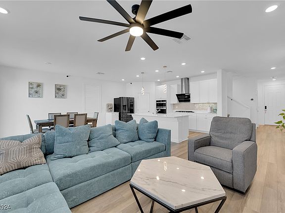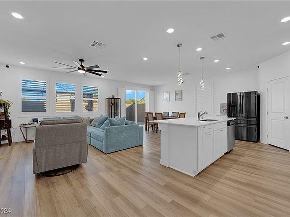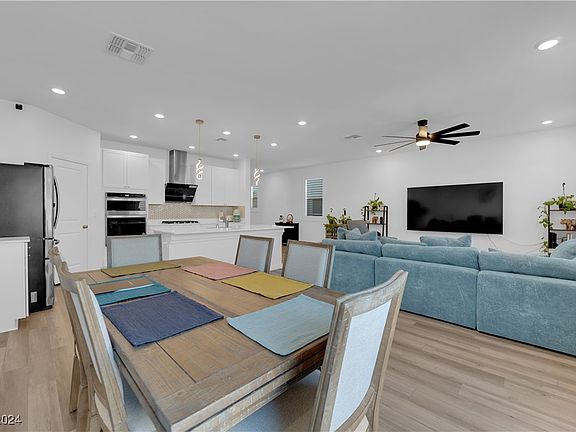 Welcome to this stunning, highly upgraded model home where luxury meets comfort. Located in a gated community in the rapidly growing SW Las Vegas, this two-year-old oversized home offers a bright and open floor plan. Boasting 5 bedrooms and 3 full bathrooms, the home features a secondary bedroom and one full bathroom downstairs, a modern gourmet kitchen, a spacious loft, and generous walk-in closets. The home is practically brand new, as the proud owner has barely lived in it. Impressive upgrades include luxury vinyl plank flooring, quartz countertops, a premium gourmet appliance package, upgraded ceiling fans and recessed lighting, plush upgraded carpet, and enhanced vanity sinks and showers. The exterior features a paver stone driveway and low-maintenance desert landscaping in both the front and backyards. Perfectly located, this home is just a short drive to the Las Vegas Strip, the airport, Allegiant Stadium, and surrounded by shopping and dining options.Schedule your showing today