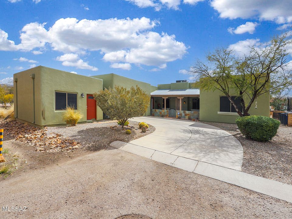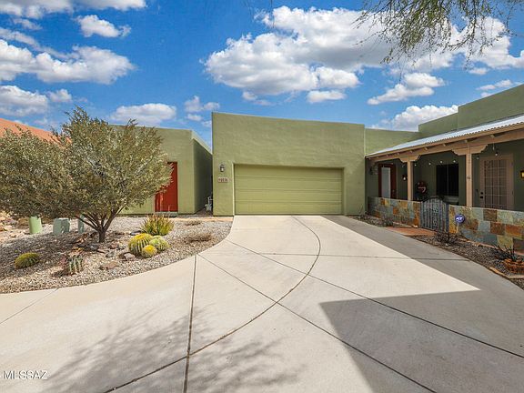 Range priced 469,900-489,900. Seller will accept or counter in this range. Full of character, attention to detail and impressive style sense, this Civano stunner will not disappoint. Enchanting covered front patio makes for an impressive entrance with custom made security door and ample space to enjoy morning coffee. Enjoy the open flowing floorplan with two bedrooms, two and a half bath, den (could be third bedroom), with fresh creamy white porcelain tile throughout, plantation shutters, honey comb shades in bedrooms, newer cabinetry, granite countertops, and beautiful matted charcoal stainless steel appliances. Bonus heated/cooled detached guest quarters w(343sq ft) could be used as office or studio, add a bathroom and you have a casita. Calming backyard area with covered patio with plenty of space for entertaining. HVAC is two years old and newer water heater. Superb location close to pool. Plenty of Civano amenities to enjoy such as pool, tennis courts, pickleball, basketball court. Agent is related to the owner.