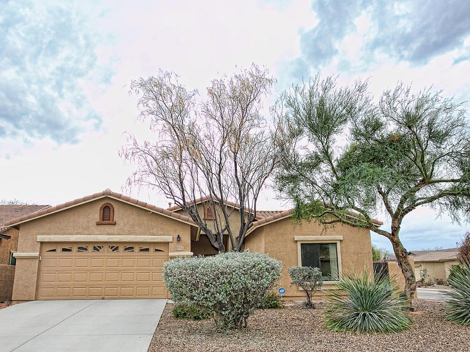 Fabulous pride of ownership home! Upgrades include 20 in. porcelain tile, newer carpet in bedrooms and granite counters/tile back splash in the kitchen. Nicely painted and all upgrades have been done in neutral colors, so no decorating dilemmas-this home is move-in ready. Large laundry room. Garage floor has been epoxy coated. Spacious brick patio with retractable cover. Easy care landscaping means you can spend more time relaxing in the hot tub. 2 community pools w/playgrounds/BBQ's, plus additional pocket parks throughout the community. Den/office is situated to allow for privacy. Vail schools, convenient to Davis Monthan, Raytheon and I-10. Shopping and restaurants are in close proximity. Don't miss this beautiful home!