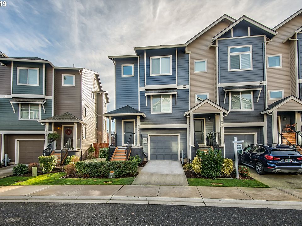 Walk into this unique end unit townhome backing to park! Upgraded flooring throughout, open kitchen with quartz counters, quiet back deck overlooking park, and fully fenced private backyard. Downstairs has full bedroom & bathroom with access to garage. Upstairs includes 2 full bedrooms & bathrooms with convenient laundry. Kitchen appliances & washer/dryer included. Close to Whole Foods, Mall, & More. New address: 10556 NE Park Ridge Way