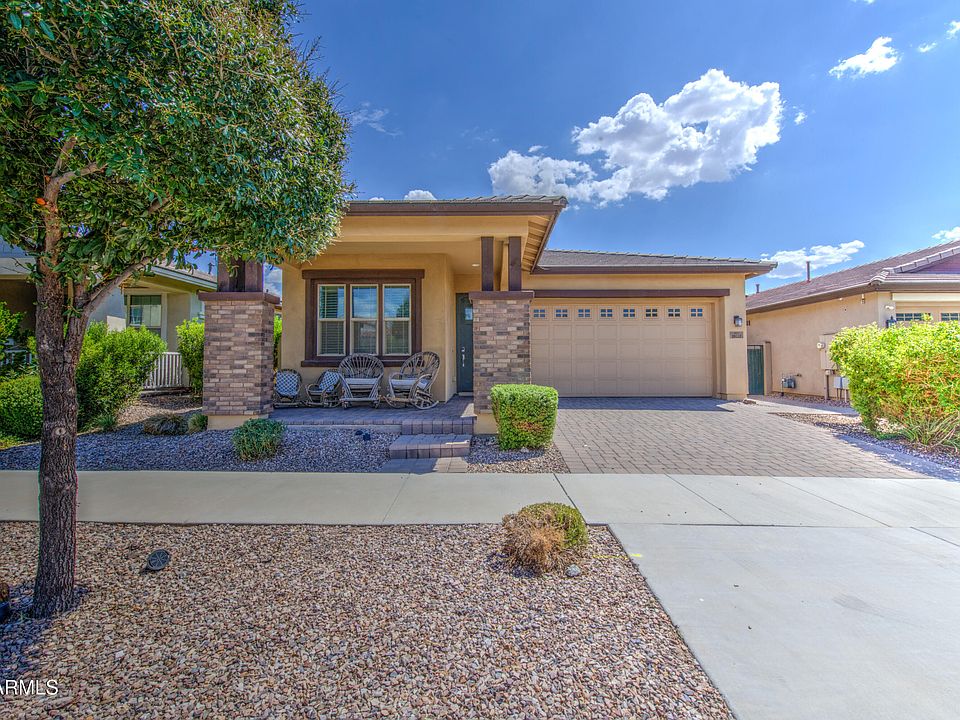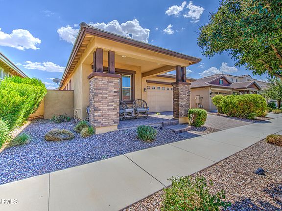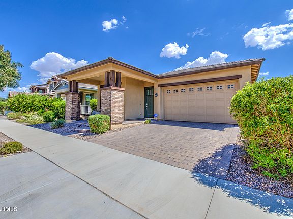 Popular floor plan in sought-after Eastmark, and this one has a forth bedroom! Upgraded gourmet kitchen with large kitchen island and gas stove! Ceiling fans, 2'' wood blinds, paneled doors, upgraded light fixtures throughout. Paver driveway, steps, and porch- with room for patio chairs! Window inserts in garage door. Home is priced to sell!