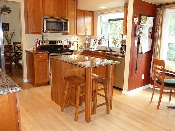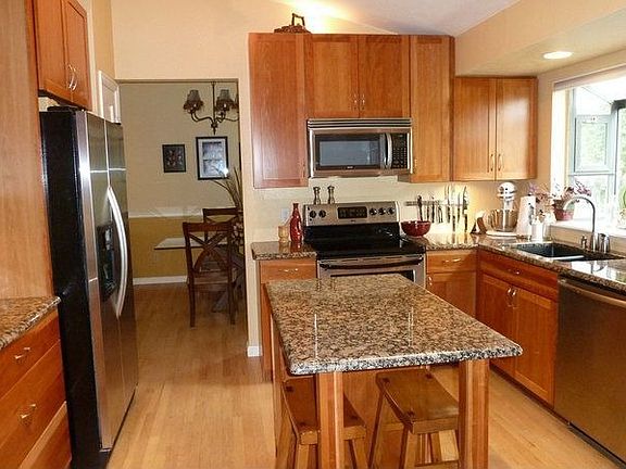 This house features an gorgeous kitchen with cherry cabinets, island seating, granite, stainless appliances, bay window. Vaulted ceilings, skylights and oak flooring throughout main floor. Park like yard with flagstone patio, large storage shed and room to park trailer/boat! Unique main level office and formal dining room. Light, bright and beautiful.