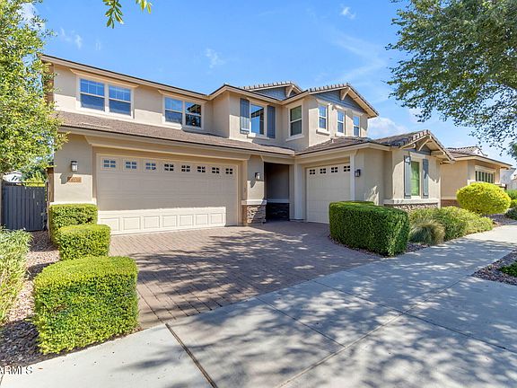 Located in the heart of Mesa's prestigious Eastmark community, where luxury living meets a vibrant and connected lifestyle. As one of Arizona's most sought-after master-planned communities, Eastmark is renowned for its picturesque neighborhoods, award-winning schools, and an array of innovative amenities designed to enhance your quality of life. This exquisite former model home embodies elegance and sophistication, offering a seamless blend of style and functionality. From the moment you step inside, you'll be captivated the meticulous attention to detail that elevates every room. The gourmet kitchen is a chef's paradise, featuring stunning two-tone cabinetry, high-end granite countertops, and top-of-the-line stainless steel appliances, including a gas cooktop, double ovens, and a beautifully designed tile backsplash. The centerpiece of this home is the expansive 15-foot multi-sliding glass door, effortlessly connecting your indoor living space to the resort-style backyard. Whether you're hosting a gathering or enjoying a quiet evening, the sparkling pool and private patio, complete with a screen enclosure, provide the perfect backdrop for any occasion. Built with 2x6 construction, this home not only promises beauty but also durability and energy efficiency. This turn-key ready residence invites you to experience luxury living at its finest, where every detail has been thoughtfully crafted to create a sanctuary of comfort and elegance. Discover why Eastmark is one of Arizona's best-selling communities and make this exceptional residence your own, complete with new garage door systems featuring upgraded motors, a reverse osmosis water system, and fresh exterior paint.