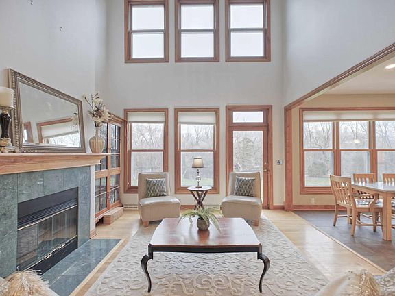 Peace and Serenity with over 500 ft of stunning Milwaukee River views on 3.5 acres! Grand two story foyer with dual stairway, formal dining room, updated eat-in kitchen features island, subway tile backsplash, granite countertops, stainless steel appliances, and white cabinets. Living room with cathedral ceiling, double sided fireplace, and gleaming hardwood floors. Retreat to the fabulous master suite with walk-in closet, double vanity, whirlpool tub, and separate shower. Three additional generous sized bedrooms all with walk-in closets. Finished walk-out lower level rec room and suite with kitchenette and full bath. Move right in!