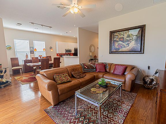 Beautiful 2BR/2BA/2CG + Den in Bedford Park at Tradition! This charming home features new exterior paint, stainless steel appliances, Corian countertops, tiled backsplash, and a pantry. Enjoy easy-care laminate wood-look flooring, a detached garage, and a large backyard perfect for outdoor living. The covered and screened lanai includes a sun shade for those sunny Florida days. Additional features include 2023 metal roof, 2025 gas water heater, laundry tub, and French doors. The spacious primary suite offers dual sinks and a walk-in shower.Bedford Park residents enjoy fantastic amenities, including a community pool, park, dog park, community room, and more! Conveniently located close to Tradition Square for shopping, dining, entertainment, and everyday conveniences