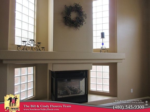 GREAT NEW PRICE & NEW GRANITE COUNTERTOPS just installed! 4 bedrooms + DEN + BONUS ROOM! Impressive formal living room w/vaulted ceilings, huge windows & gas fireplace. Travertine flooring & newer carpet plus NEW neutral interior paint! Great kitchen w/upgraded cabinets, over-sized island, pantry, double ovens, & gas cooktop. Den features wood flooring & is right off family room. Upstairs is the bonus/media room w/large balcony, 3 secondary bedrooms (one has a walk-in closet and a french door to balcony w/Superstition Mountain views), up a few more steps is the master suite - very private! Over-sized lot w/south-facing patio overlooking a large grass yard & built-in barbecue & gas fireplace! Great location near shopping, restaurants, freeway & Award-winning Gilbert Schools!