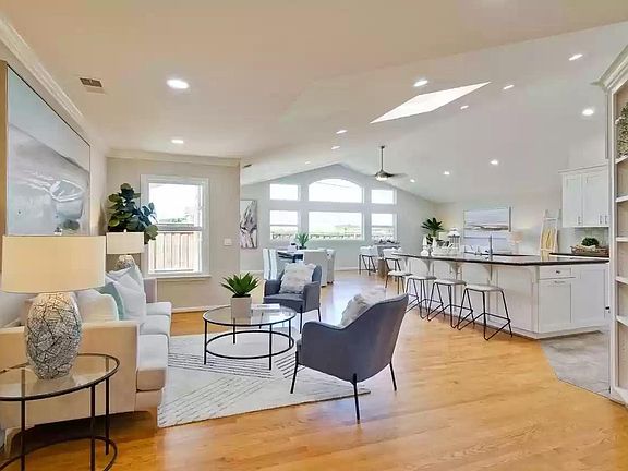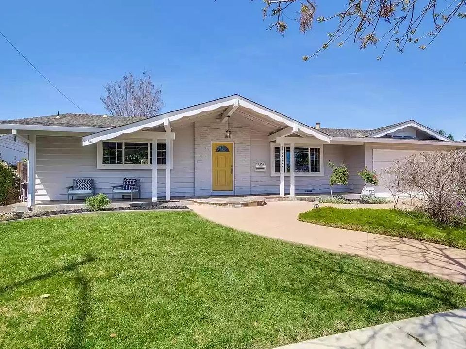 Absolutely stunning one story, 4 bedrooms, 2 bathrooms nestled in a highly sought-after location offers academically-distinguished Cupertino schools: Eaton Elementary, Lawson Middle and Cupertino High. This gorgeous home features a contemporary, open-concept floor plan with outstanding features. Living and dining room features an impressive vaulted ceiling with recessed lighting, ceiling fan, hardwood floor, Anderson sliding door, picture windows showcase exterior views perfect for everyday, modern living. The gourmet kitchen is complete with skylight, granite countertops, tile backsplash, abundance of storage cabinets and drawers, new stove/oven range and dual sink. Well-proportioned bedrooms, each with ceiling light and ample storage closet space. Private backyard boasts mature plantings, and a patio great for guest entertaining and social gathering. Convenient location, close to Apple Park, Cupertino Main Street, library, shopping, groceries, dining and easy commutes to employers.