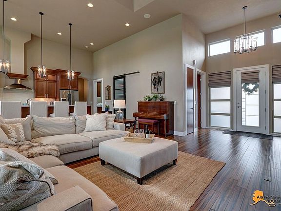 Elegant, sunlit one level home features a stunning great room w/ 14' ceilings.The cherry kitchen w/island bar offers exquisite quartzite counters & SS KitchenAid high end appliances. Dramatic stacked rock fireplace, bamboo floors, 3 ft wide & 8 ft tall solid doors accentuate the spaces. The spacious master suite w/coffered ceilings enjoys a beautiful bath w/steam shower. Fully ADA accessible home.