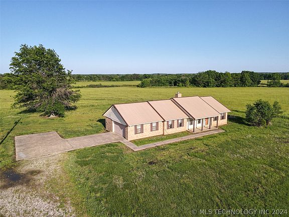 100 ACRES!! Beautiful custom built home located East of Checotah in McIntosh County. This spacious home has large living room with a fireplace. Formal dining room with access to covered patio. Pretty kitchen with appliances and large window allowing lots of light and beautiful views, kitchen nook AND spacious pantry. There are three bedrooms and two bathrooms. Master bedroom is spacious with private bathroom and walk in closet. Laundry room AND mud room. Attached two car garage. 60 X 32 metal shop building with 15 ft open area, one roll up 14 ft door and two walk in doors. Cellar. Home sits on 100 BEAUTIFUL ACRES. Two nice ponds. Barb wire fencing. Come enjoy the quiet country where you can relax, fish or just sit and watch wildlife from nice covered front porch or covered back patio. Schedule your private tour today!!!
