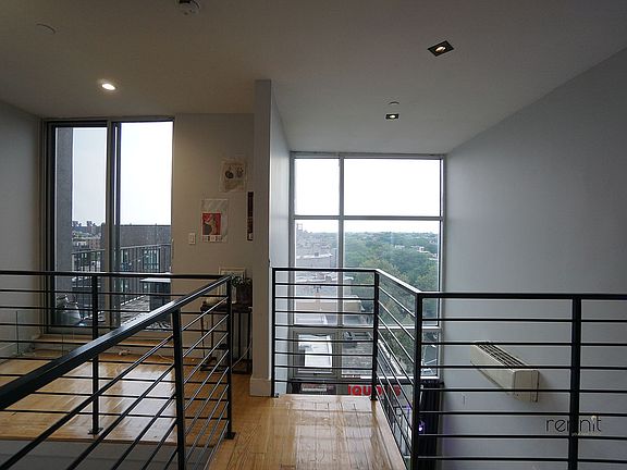 Elevator building, Rent Stabilized Modern Renovated lofted unit, super high ceilings, OVERSIZED WINDOWS, Private deck, - open loft space upstairs that is easily used as a 2nd bedroom! All New Elevator building! this apartment is on two levels with a upper level open mezzanine over looking the tall ceiling living room! In unit laundry, 2 balconies on first level plus a third large deck accessible from the upper level, Gorgeous windows, Tall Ceiling, Central Air and heat and Great size bedroom with windows and closet! Hardwood floors, Video intercom system All new kitchen appliances includes Gas stove, Guarantors Accepted, Pets Allowed *upon approval, Central Air and Heat, Roof Deck / Rooftop, virtual doorman / Elevator building rent stabilized - 1 months broker fee due at signing Smoking allowed:No