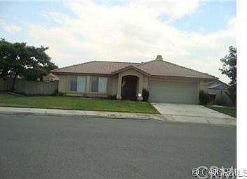 Three bedroom two bath home located on a cul de sac in Three Rings Ranch. The Living room has a fireplace and laminate wood floors. There is a dining area also with laminate wood flooring. Master bedroom and master bath. There are two covered patios and a nice sized back yard. The two car garage has washer dryer hook ups. Home is located close to 10 and 60 freeways.