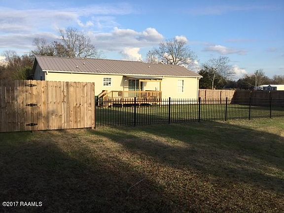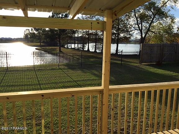 Precious country cottage located about 5 miles from I-10. Split floor plan has 3 spacious bedrooms and 2 1/2 baths. Spare bedrooms separated with Jack-n-Jill baths, with two lavatories and each have lots of storage. Like-new with freshly painted walls. See Improvements shown on list in documents section. Cathedral ceilings and huge island in kitchen. Large master suite with two lavatories, garden tub, separate shower and two walk in closets. New metal roof and new beautiful rear deck overlooking huge lake/pond. See sunset pics. Great neighbors. A special place away from hustle and bustle of city life but minutes from I-10 access, pharmacies, schools, and eateries. Permission to fish the lake may be obtained from lake owner. Rear fence is about 2' inside the property lines from pond.