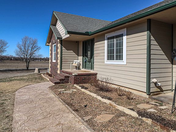 Beautifully open and spaciously designed walkout ranch home with 4 bedrooms, 2 baths and a rough-in for bath in the mostly unfinished basement! Abundant dining, breakfast nook for the on-the-go breakfasts or the quick-and-easy lunches that you need in your fast and furious schedule and with the custom bar area, entertaining will be a breeze here with all this space! The master bedroom on the east walks out to the elongated wood deck and the deck steps angle nicely down to the exceptional patio area from the walkout basement! The dishwasher, disposal, water heater, and humidifier are less than 3 years old and you'll love the newer flooring on the main level! And for your safety, a secure storm shelter is provided just off the finished office space (without ceiling) in the basement. This is a long 5+ acre property which extends past the dike in the back and offers you your own space in the country! Not certain how the fishing is from the creek behind but you can certainly try your luck! There is a sprinkler system, private water well, concrete house siding, a 12'x13'-ish storage building, and septic system. This might be the property you've been looking for!