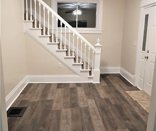 A three bedroom, 1.5 bath home with 2 car garage renovated and ready for you! Host the best dinners with a hugedining room or have your bbq parties on the freshly painted back deck. Complete renovation of 1st and 2nd floors withnew paint, new carpet and new vinyl plank waterproof flooring, new outlets and light fixtures, updated bathrooms,newer water heater, updated kitchen with glass backsplash and appliances included. Gorgeous, extra-wide baseboardsand other vintage trim, crisp and clean. Formal entryway with staircase, enclosed porch/sunroom could be anawesome office, formal living room open to dining room, open to kitchen, first floor half bath. Nothing to do but love it!Schedule your tour today!
