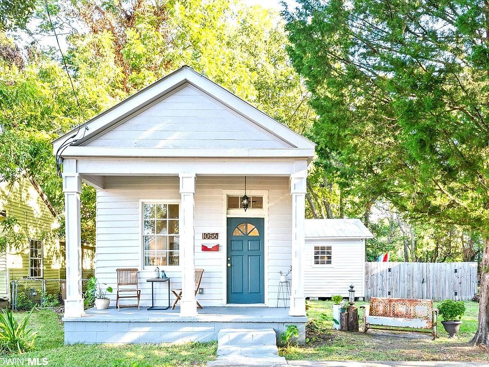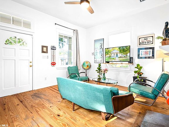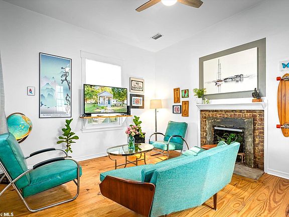 Welcome to your new home in the Oakleigh Garden District! Listed in the National Register of Historic Places and built in 1891, this shotgun-style house is your chance to own a piece of Mobile's rich history. Located within walking distance of all the incredible attractions this neighborhood has to offer, lively parade routes, Washington Square, The Hummingbird Way and Callahan’s are all just steps away. Inside, you'll be greeted by the timeless charm of this move-in ready home. 10-foot ceilings create a sense of spaciousness; and wide plank pine hardwood floors and an original 2-sided fireplace, add warmth and character. The natural light and freshly painted interior are bright and welcoming. All the light fixtures throughout the house have been updated, including two vintage midcentury modern fixtures, in the hallway and kitchen, that add a touch of retro elegance. The primary bedroom, situated towards the back of the house, is oversized and private. The adjacent full bathroom features a tub and shower combo and an updated vanity, combining style and functionality. In the kitchen area, custom cabinetry and shelving have been added to provide extra storage space. This home offers off-the-street parking and sits on an oversized lot. The privacy fenced back yard features a wide gate for easy access. The back porch has been rebuilt and covered, and the back yard is a perfect spot for outdoor relaxation and entertainment. Additionally, a shed is included, providing even more storage options. Other updates to the home include: a metal roof installed in 2015 and in 2016, the HVAC, water heater, plumbing, electrical and all appliances were updated. The transferable termite bond with Arrow renews in March 2024. *(ANY/ALL UPDATES ARE PER SELLER). LISTING BROKER MAKES NO REPRESENTATION TO SQUARE FOOTAGE ACCURACY. BUYER TO VERIFY.*