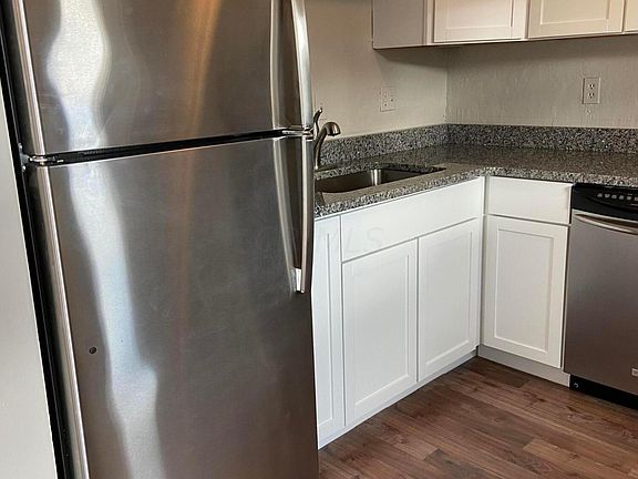 Why rent when you can buy this extensively updated condo in the popular Hardesty Village complex. Highlights include new kitchen with white shaker cabinets, granite countertops, stainless steel appliances, laminate wood floors in the kitchen, dining area and half bath. New carpet throughout. Updated full bath with new vanity, ceramic tile surround and new vinyl flooring. Great extra space in the finished lower level with new carpet. Ample storage in the unfinished side of the basement with built in shelves and a laundry area. Step outside to the large private patio with shed and door to 2 covered parking spots. Other updates include freshly pained interior, new gutters and new air conditioner. Nice location close to the pool and park. Agent owned