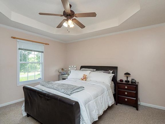 Partial Brick one level home on great lot~split bedroom floor plan~covered porch~beautiful colors~tray ceiling in master suite~side entry garage~nice oak cabinets~pantry~large laundry area~water softening system~new water heater and new roof~OPEN HOUSE SAT 7/27 11-1 all offers reviewed sun 7/28 after 5pm