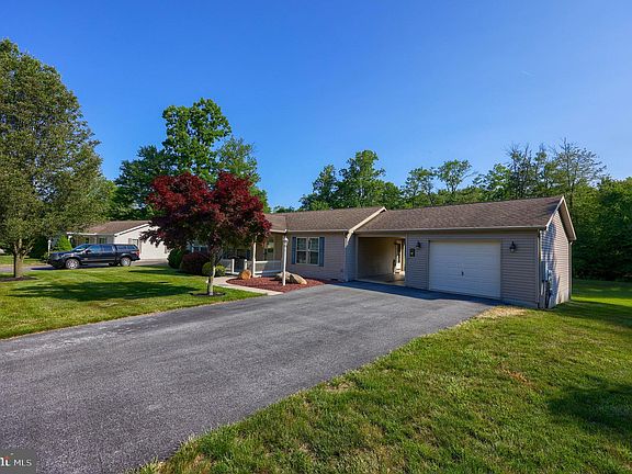 This home is located on Hemlock Circle in the desirable Gretna Springs 55+ Community. With 3 bedrooms, 2 full bathrooms, and over 1,400 sq ft, this home features a large open living room, dining room, and kitchen area. The primary bedroom has an attached full bathroom and walk-in closet. This home has new carpet throughout, central air, an attached carport and garage, a generator hook-up, a covered back patio overlooking a large yard backing up to the woods, and more! This home is centrally located off Route 72 just minutes from the PA Turnpike and Route 322. Lot rent includes water, sewer, trash, and access to the community center. Don't miss this opportunity, schedule your showing today! ***An offer deadline has been set for Tuesday 6/20/23 at 12 pm. ***
