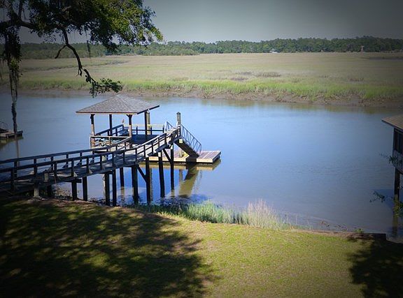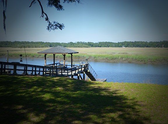 PRIVATE DOCK - SOON X FLOOD ZONE - NO FLOOD INS - RIGHT ON JULIENTON RIVER!!! PLUS 2 lots - 1 acre across street are for sale too. Bundle.Offer. Save your views. Fabulous getaway or full-time living home with Easterly views from back yard, dock, living room and 3 of the bedrooms. Mahogany ELEVATOR to load you, groceries, suitcases and more to main level. NEW floating dock. Dock Cover to sit under while you fish from the dock (fish and crabs right at the dock)! Boat Hoist Permit in hand. 4 bedrooms and 4 bath - 3 are En Suites. Open kitchen. Underneath parking and/or family gathering for cooking, grilling and frying fish. A MUST SEE!! 5 miles to the Shellman Bluff 3-way stop sign for golf cart riding. Local restaurants, Sapelo Hammock 18-hold golf,, gas, convenience and groceries.