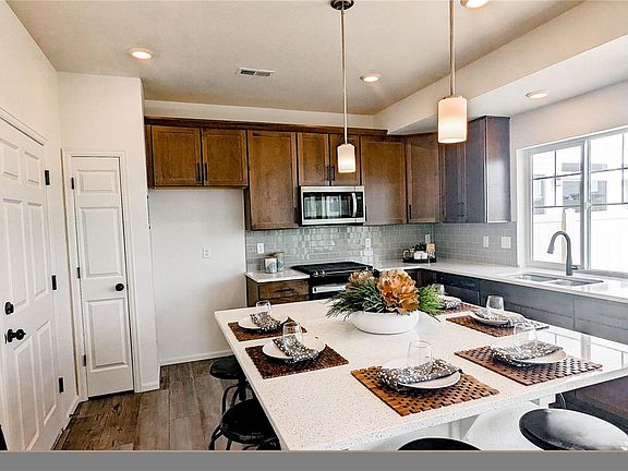 Modern style low maintenance living at it's absolute finest. Single family home with open floor plan concept, 4 Bedrooms with 4th Bedroom and 3rd Bathroom on its own level, Smart space, eat in style kitchen, 2 car attached garage, full fencing, front landscaping, paver drive, cul de sac living... This home is darling with an abundance of natural lighting. Close to newest Elementary School, community pool, park, trails, hiking, and more.