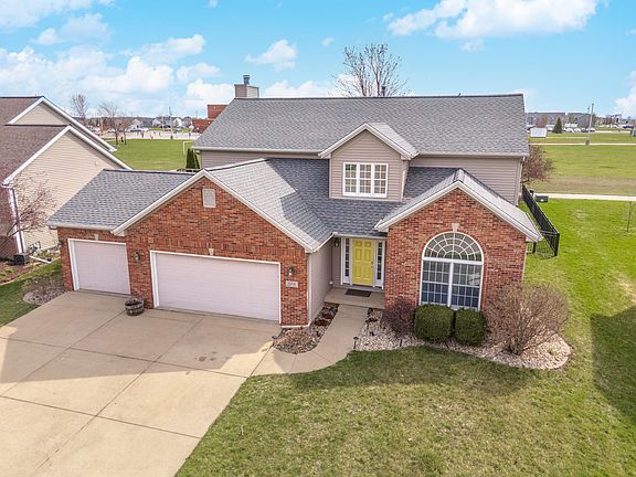 Excellent 5 Bedroom, 3.5 Bathroom home in Eagles Landing that backs up to Grove Elementary School with No Backyard Neighbors! Fresh paint throughout and ALL new carpet (2025). Main floor features 2 story foyer, formal living room with cathedral ceiling, separate dining room with wainscoting, eat-in kitchen with island and pantry, and additional living room with fireplace. Primary suite with vaulted ceiling on the second floor with 3 additional bedrooms, additional full bath, and a bump out that overlooks the front door, perfect for an office space or sitting area. Basement has newer LVP flooring (2018), a bar perfect for entertaining (2018), an additional bedroom and full bath, and family room with built in projector and motorized screen, and plenty of storage space. Amazing fully fenced backyard (2018), with a pool that has a deck and swim up bar (2022), and is heated with a buried gas line (2021), a concrete patio with built in fire pit (2021) and gazebo (2022) and all new outdoor lighting (2022). Many other updates including: New HVAC 2023, Roof 2017, Water Heater 2021. This is a GREAT home, ready for its next owners! Schedule your showing today!