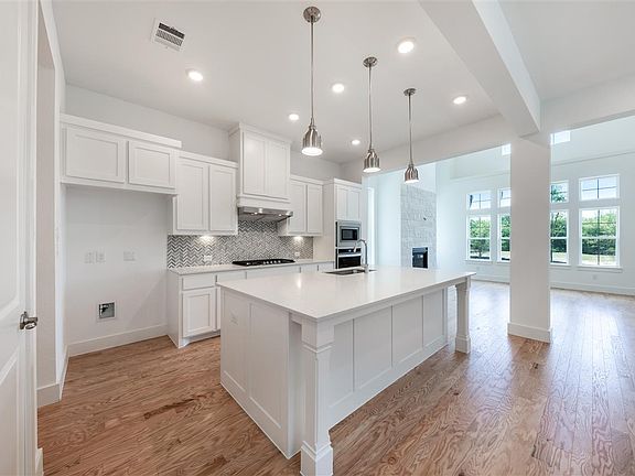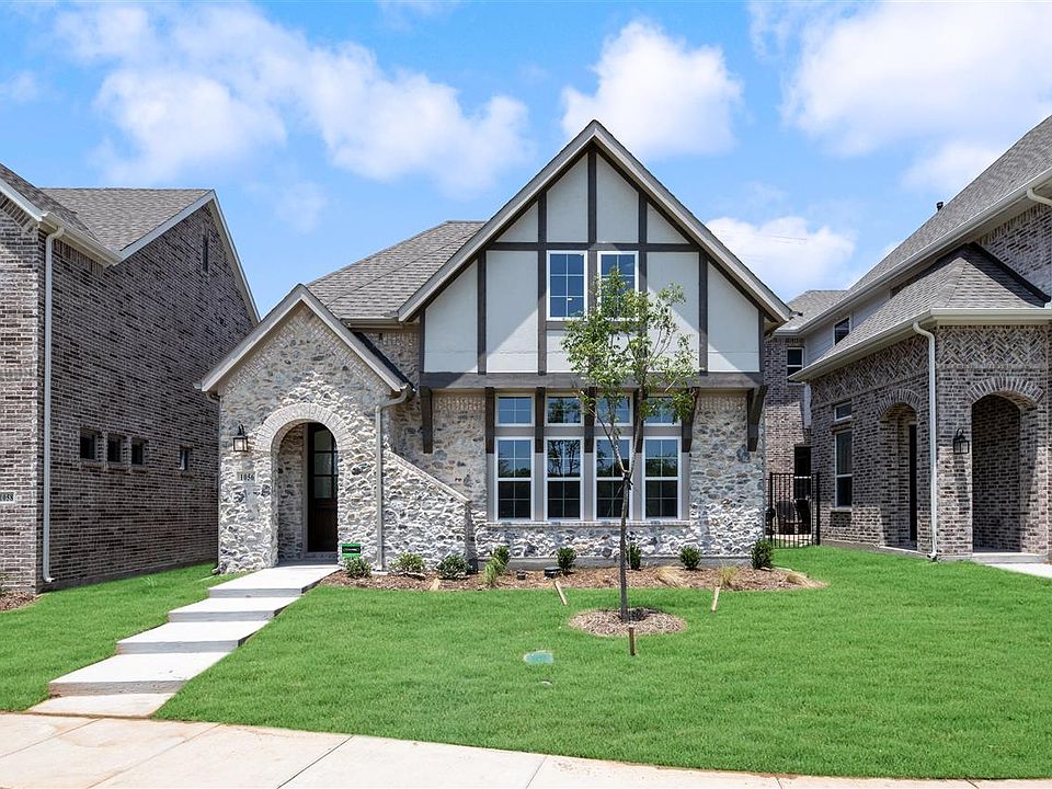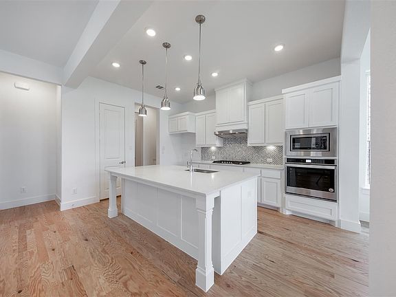 Luxuriousnew Ashton Woods homejust11 miles fromLegacy West, minutes from US-75 andwithin walking distance to shopping and dining at the Shops at Watters Creek! This charming 2-story home features brick and stone exterior with gorgeous half-timber detailing, vaulted ceilings and hardwood flooring. Just off the foyer, the family room is bright, open and has elongated windows and a Coronado stone gas fireplace. A cozy pocket office off the family room would be great as a home office or children's homework space. The kitchen finishes are both gorgeous and functional with an eat-in bar top island, Maestro Quartz countertops, pot and pan drawers, a pull-out waste basket, satin nickel glass pendant lighting, a butler's pantry, 42" Knotty Alder cabinets, tile backsplash, upgraded high-arc pull downfaucet and a storage pantry. The master suite is complete with a tray ceiling, a double sink vanity, walk-in closet with a door to the utility room, and a tiled shower so spaciousyou'll feel as though you're at the spa. Upstairs, two secondary bedrooms have their own bathrooms and walk-in closets. Enjoy family game or movie nights in the upstairs game room! A rear entry 2-car garage, mud room, backyard covered patio, 8' doors, energy efficient lighting, sprinkler system, dual pane windows, programmable thermostat, LED disc lights, gutters, gas water heaterand morecomplete this new