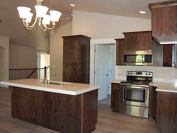 ABOUT 2600 SQUARE FT TOTAL LIVING SPACE WITH BRICK AND SIDING EXTERIOR. HOME HAS A LARGE 2 CAR GARAGE WITH TOP STORAGE, 2 NICE BEDROOMS FINISHED ON MAIN FLOOR WITH 3 ADDITIONAL BEDROOMS AT THE BOTTOM OF THE STAIRS, 2 FULL BATHS ON MAIN FLOOR, MASTER BEDROOM SUITE, WALK IN CLOSET, GREAT ROOM WITH VAULTED CEILINGS, 2 TONE PAINT THROUGHOUT, CUSTOM CABINETS WITH QUARTZ COUNTERTOPS, LAUNDRY ON MAIN FLOOR, AND NICE DECK OFF THE KITCHEN WITH DURABEL TREX. THIS IS A LARGE LOT WITH ESTABLISHED FRUIT TREES; IT ALSO BACKS A WALKING PATH. IT IS CLOSE TO SHOPPING, SCHOOLS, HAFB, AND MINUTES AWAY FROM THE FREEWAY.