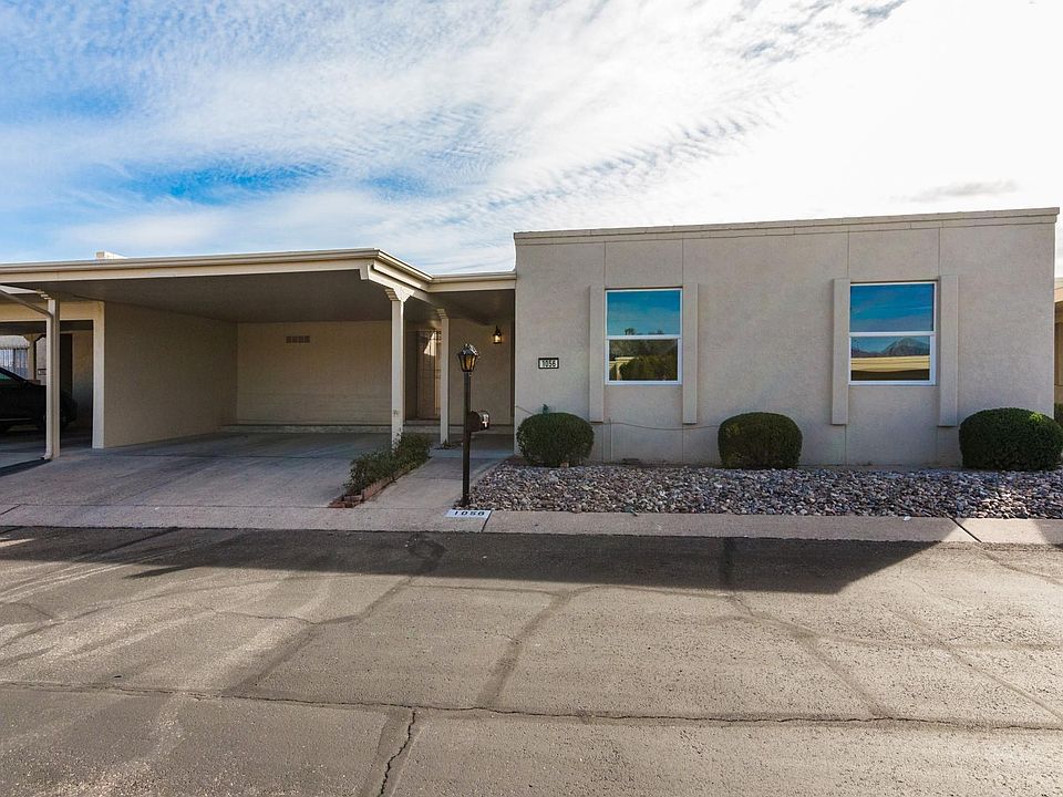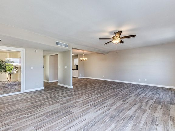 Fantastic 2 bed 2 bath home with amazing mountain views & courtyard. All new two tone interior paint. Open concept kitchen featuring OTR microwave, stunning granite counter-tops, full decorative tile back splash & beautiful cabinets with plenty of storage. Seller will provide new stainless steel appliances including smooth-top electric range & dishwasher with accepted offer. New elegant ceramic tile flooring & new baseboards throughout with new carpet & pad in the bedrooms. Both bathrooms have new vanities, new mirrors, new toilets & new beautiful tile shower surrounds with deco accents. New brushed nickel light fixtures & ceiling fans installed. Back yard features covered patio & side yard features courtyard with pavers. This home is move in ready! Agent/Owner.